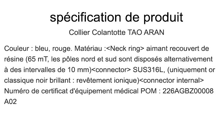 Collier Magnétique Japonais pour Soulager les Douleurs Cervicales et Augmenter l'Énergie
